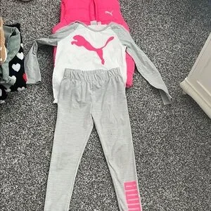 Puma Kids Pajama Set - White, Gray, and Pink