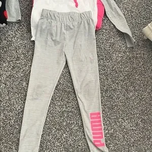 Comfortable Puma pajama set with a bold pink logo. Soft gray fabric with white accents. Ideal for cozy nights.