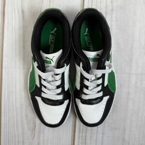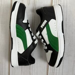 Puma Kids Rebound V6 Black White Green Low Top Sneakers Size 2Y