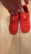 Vibrant red sneakers with a bold yellow design. Yellow flames on side and Marshall log on back. Only worn inside a few times at school.
