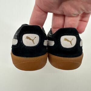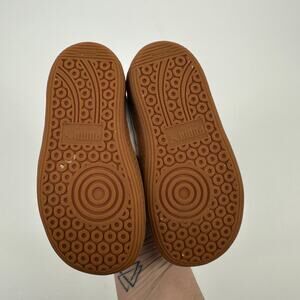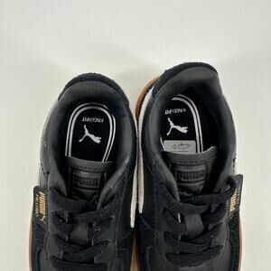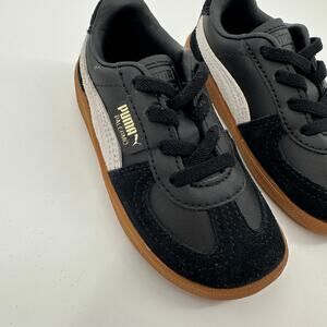 Stylish Puma sneakers for toddlers size 7. Black upper with suede details white stripe. Durable brown sole. Literally worn for about 20 minutes … why such a short time? because apparently his foot grew and I didn’t know lol so they are too small already haha