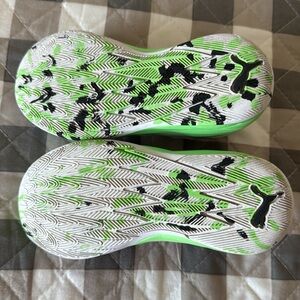 Stylish Puma sneakers for kids. Features gray white and green design. Comfortable and trendy.