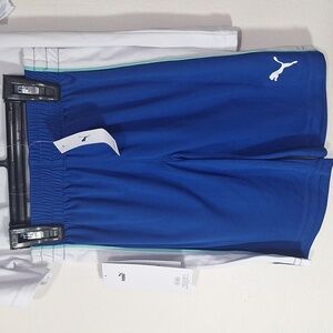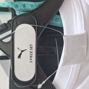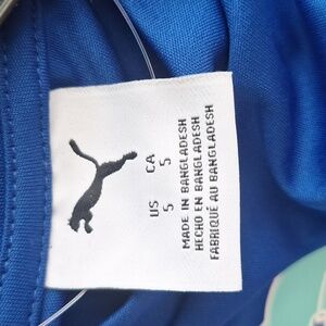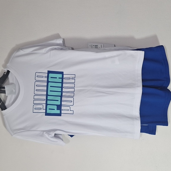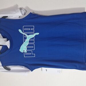 This is a 3 piece set from Puma. White short sleeve top with Puma graphics. Blue tanl top with puma logo and matching blue shorts with an electric waistband, side stripe and logo. Perfect set for casual summer althetic wear. This is a size 5 and NWT.