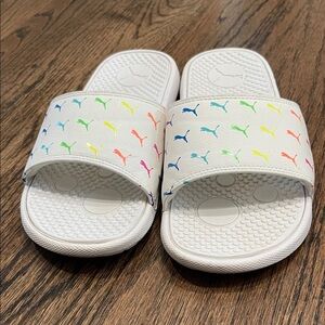 Puma Kids White Sandals with Colorful Logo Girls size 4