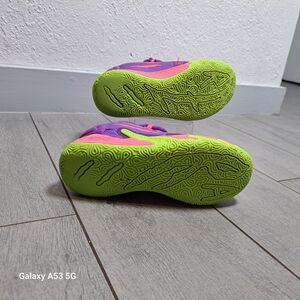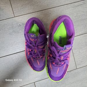Puma Kids basketball shoes in Purple with Neon Green Soles