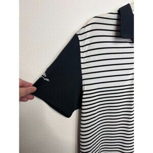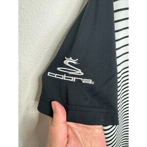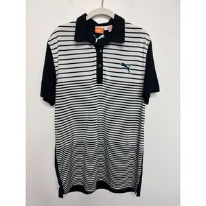 Puma Large Striped Cobra Golf Polo Shirt White Black Short Sleeve Collared