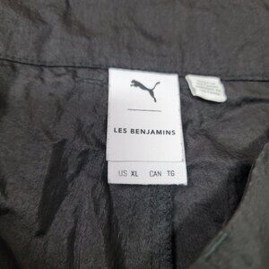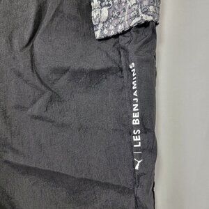 Item: Puma Les Benjamins Black Pants Gray Print Zip Cover Over Pockets Way 1 Size XL +Please note measurements - I feel this fit a bit larger than XLInseam ~30" and Waist ~43"There is not a lot of give in this fabric.Zipper / snap close on front100% Nylon shell