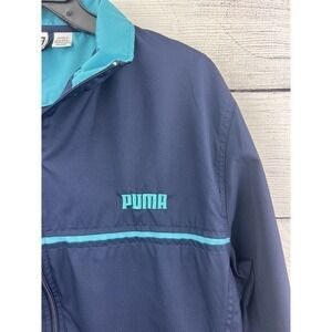 Puma Lightweight Fill Zip Windbreaker Jacket Navy Blue Turquoise Medium