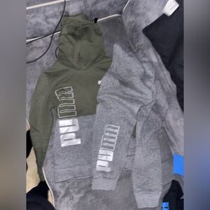 Excellent pre-owned condition, no flaws, Puma 3-piece coordinating athletic set. Some pieces are likely NWOT. Set includes a sleeveless tank, short sleeve tee and shorts in little boy’s size 5. Tank is solid navy blue with Puma graphic in orange and gray/silver. Short sleeve tee is orange with navy blue Puma logo at chest. Athletic shorts are heathered gray with Puma logo and panels at sides in navy blue to tie in with both tops or can easily be worn with other shirts in this neutral and classic gray and navy colorway. This set would be fun for a little sports fan whose team colors are orange and navy blue.