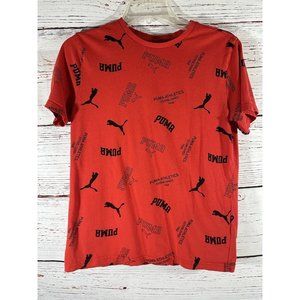 Puma Logo T-Shirt Tee Boys Size Large Red Short Sleeve Athletic Spell Out Cotton