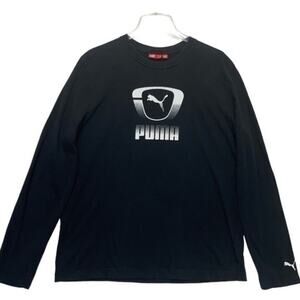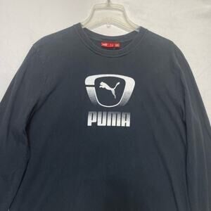 Puma Long Sleeve T-shirt black white logo print graphic tee crewneck Size Large