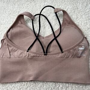 Puma Mauve Sports Bra Small. Preowned and in great condition. Criss cross back with cup support. Please see all photos. Approx measurements in pictures.