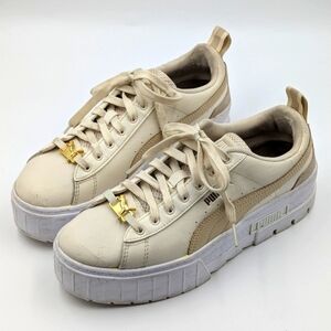 Worn inside heels, leather starting to crack around right collar, scuffs on the toes and small dark marks/stains on laces and rubber (see pictures). Still plenty of life in these!