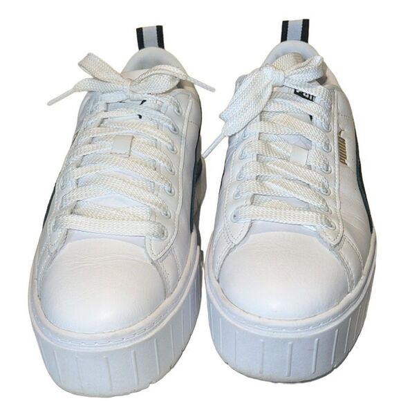 Puma Mayze White and Black Leather and Suede Lace Up Sneaker Women's Size 8.5