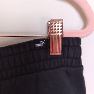 Puma men's black jogger style elastic waist fleece lined sweatpants with white puma logo, elastic at the ankles and two front pockets