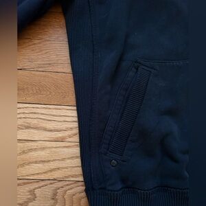 Excellent condition full zipper sweat jacket. Logo on front and small logo on back up near neck. Ridged like design on sides which allows for some minor flexibility and stretch.