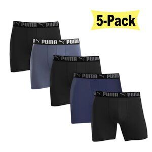 Upgrade your essentials with the Puma Sport Luxe 5-Pack Boxer Briefs, designed for everyday comfort and sleek performance. This assorted set includes 3 Black
