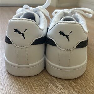 Stylish white sneakers with a striking black accent. Ideal for everyday wear.