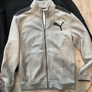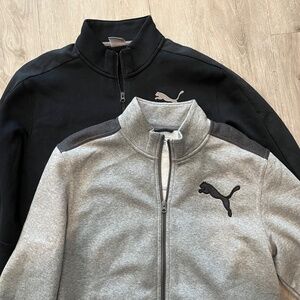PUMA Men’s Full Zip Logo Fleece Track Jacket – Set of Two (Black & Medium Heather Gray, Size: Large)