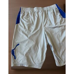 Puma Men's L Shorts Big CAT Logo Drycell Logo Drawstring Gray Blue Gym Stretch