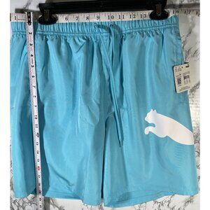 Puma Mens Large Blue Drawstring Swim Shorts With White Puma Logo