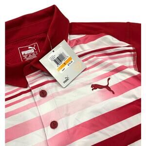 Puma Men's Long Shot Stripe dryCELL Golf Polo Shirt in Chili Pepper