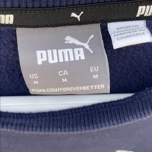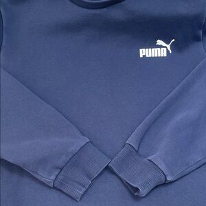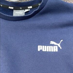 Navy crewneck sweater with Puma logo on chest. Comfortable and stylish.