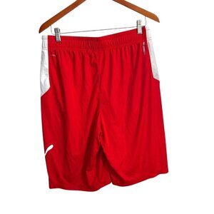 Designed for those who value both style and function, these Puma athletic shorts offer breathable comfort and a sporty look. The vibrant red and white design embodies a dynamic aesthetic suitable for various athletic activities.