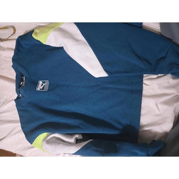 Puma Men's Sweatsuit Medium Blue with White and Lime Accents