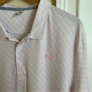 Puma Mens XXL 2XL Palm Tree Print Performance Polo Shirt Golf White Pink Summer