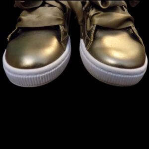 Chic metallic sneakers with luxurious satin laces. Ideal for a stylish statement. Only tried on never been worn a few scratches as you can see in photos above please check all photos before purchasing or making any offers or bids please 😊 Open To Offers
