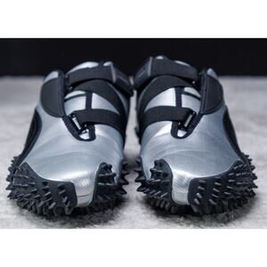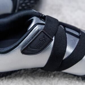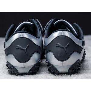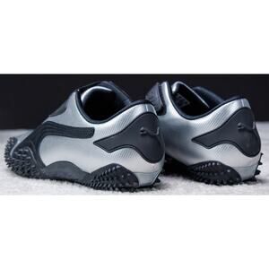 Puma Mostro Metal Silver Black Leather Sneakers Womens Size 10 Mens 8.5 Leather and synthetic upper. Excellent condition - see pictures for wear. Worn once, comes with original box. Runs small, size up half size.