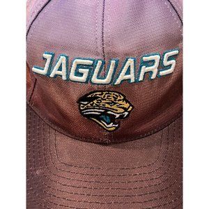 Puma NFL ProLine Baseball Cap Jacksonville Jaguars Vintage OSFA Y2K Colorful embroidered hat Ombre design. Strapback Nylon fasten back strap adjustable closure. Flat bill. One size fits all. Made in Bangladesh. Wear and discoloration on inner side of hat. I haven't tried to clean this, but you can! Colorful in brown and purple with spell out logo on the front had jaguar cat embroidered.