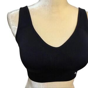 NWOT. Black Seamless Sports Bra Women Various Sizes. Pull on style, adjustable slide, convertible back straps, removable padding, seamless and tagless, moisture wicking, logo front bottom left. Pictures are part of description.