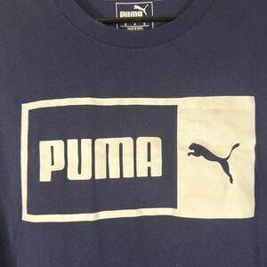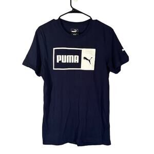 Puma Navy Blue Square Front Logo Short Sleeve Casual T-Shirt Men Sz S