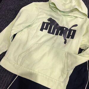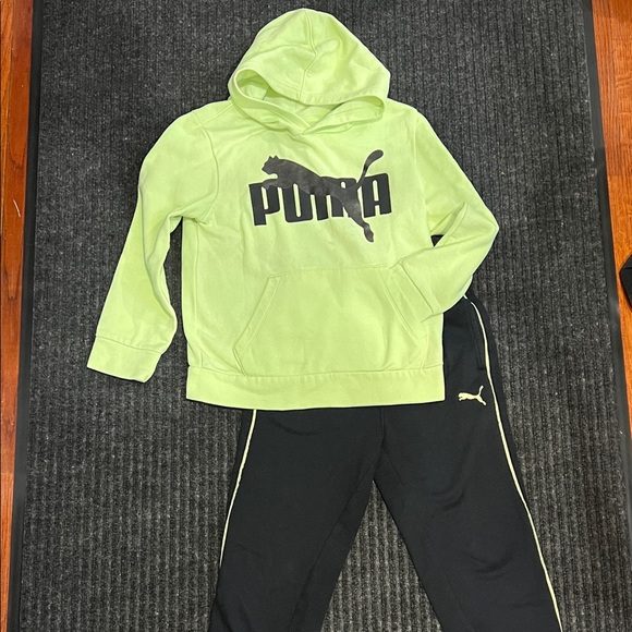 Puma Neon Green Hoodie and Black Track Pants Kids size S (8)