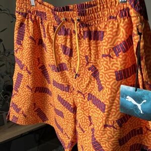 Puma No Fade Swim Trunk 7in Inseam Size XL Orange W/Logo Accent NWT $55