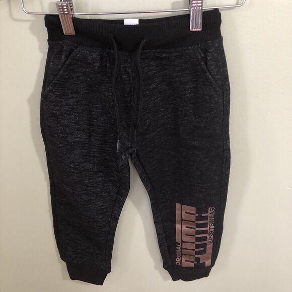 Puma Original Sportswear Boys Jogger Sweatpants Black Size 4 Gold Lettering