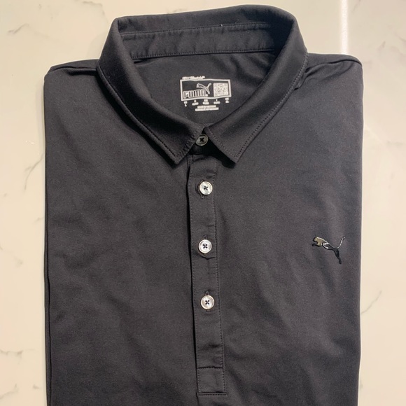 Puma Lifestyle Performance Black Polo with Side Mesh Sleeve Details Silicon Puma Logo ay Left Cheat and sleeve - Size L