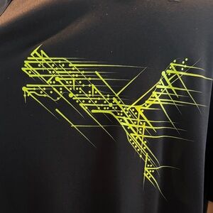 Design: This jersey features a black base with a "glitch" or abstract geometric Puma logo in Neon Citrus or Electric Lime.