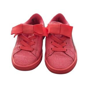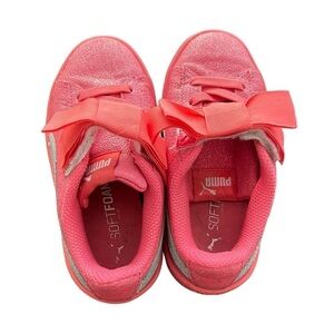 Puma Pink Silver Sparkle Bow Vikky V2 Ribbon Glitz Size 10.5 C Toddler Girl’s