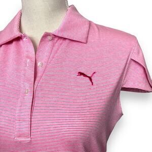 Puma Pink & White Striped Polo with Cap Sleeves Size S