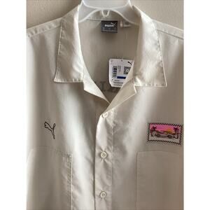 Puma Pl Summer Crew Collared Short Sleeve Button Up Alpine Snow XL Shirt NWT