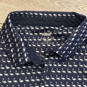 Puma Polo Shirt Men's XXL Blue All Over Print Golf Performance Flamingo Casual