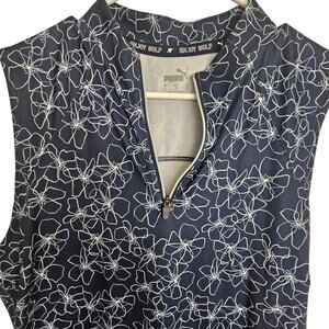 Puma Polo Shirt Women L Cloudspun Island Flower Sleeveless Golf Polo 1/4 Zip