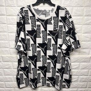Puma Power All Over Print Graphic Tee Logo Black White T Shirt Men 2XL. New with original tags. Clean ready to wear right away. Pet and smoke free home. Fast shipping. Measurements posted. Check pictures for detail.
