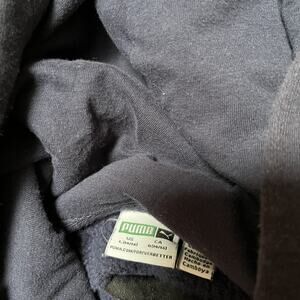 Puma pullover hoodie sweatshirt in solid navy blue. Good condition, minor wear and fade. Size L / 14-16.