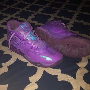 Stylish purple athletic shoes by Puma. Features a sleek design with teal accents. Perfect for sports and casual wear.