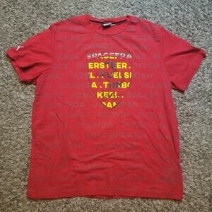 Puma Race Ferrari Scuderia All Over Logo Graphic T-Shirt Red Mens Size XXL