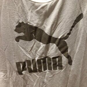 Puma Racer Back Tank White Silver Logo Sleeveless Tank Size Small Athletic